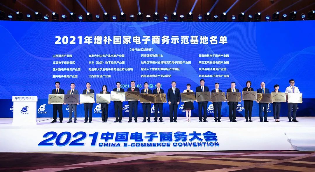2021中国电子商务大会今日在国家会议中心召开,大会以“数育新机·商引未来”为主题,旨在为全球电子商务、数字经济发展、传统产业转型提供新思路、新模式、新智慧,打造电商领域信息共享、合作对接、互学互鉴的主流会议平台。开幕式上,国家商务部副部长任鸿斌为“云纺电子商务产业园”等16家增补国家电子商务示范基地进行授牌,尊龙凯时集团云南蔚岚信息技术有限公司作为示范基地企业代表受邀参加了本次会议。